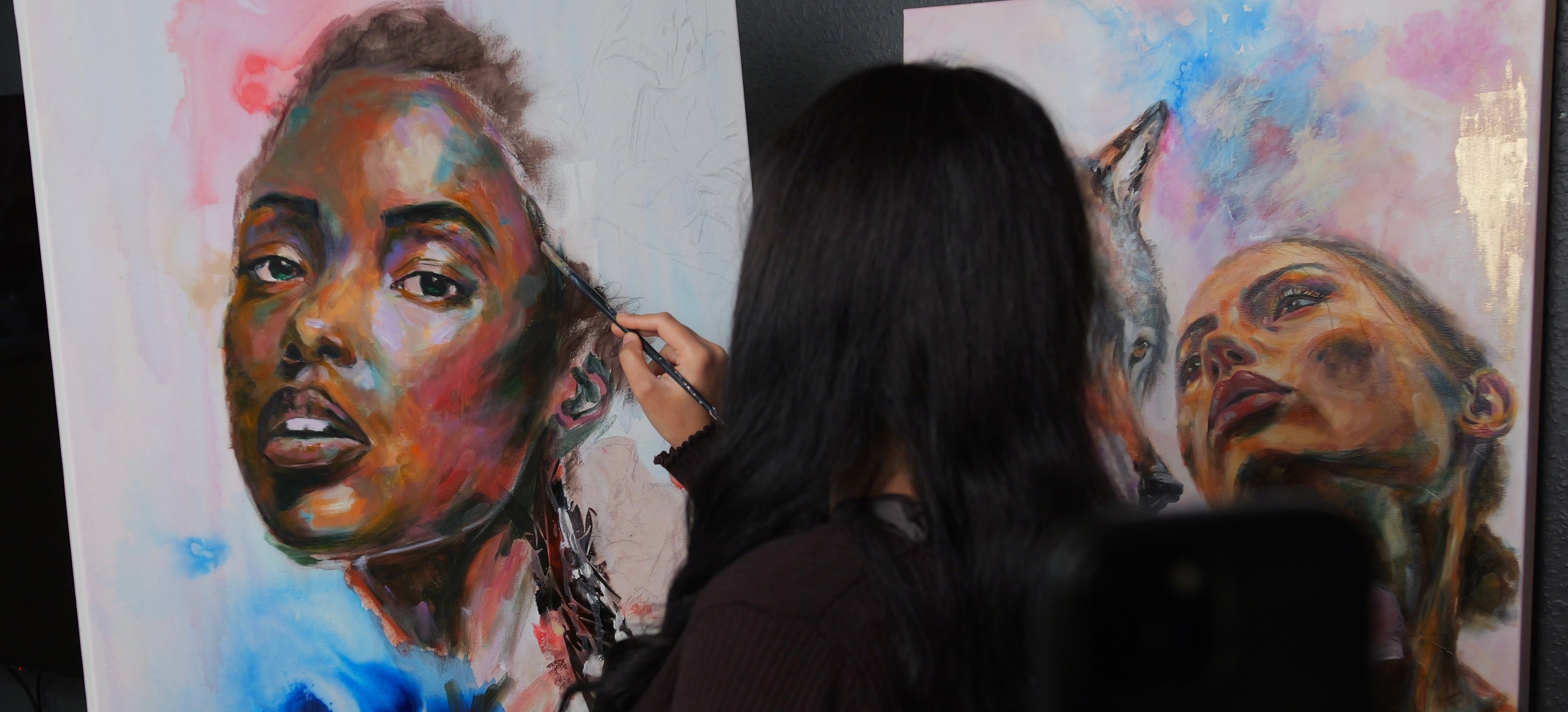 Through mixed-media oil painting, I explore the shared emotional language between humans and animals, using expressive colour to evoke resilience and quiet strength.