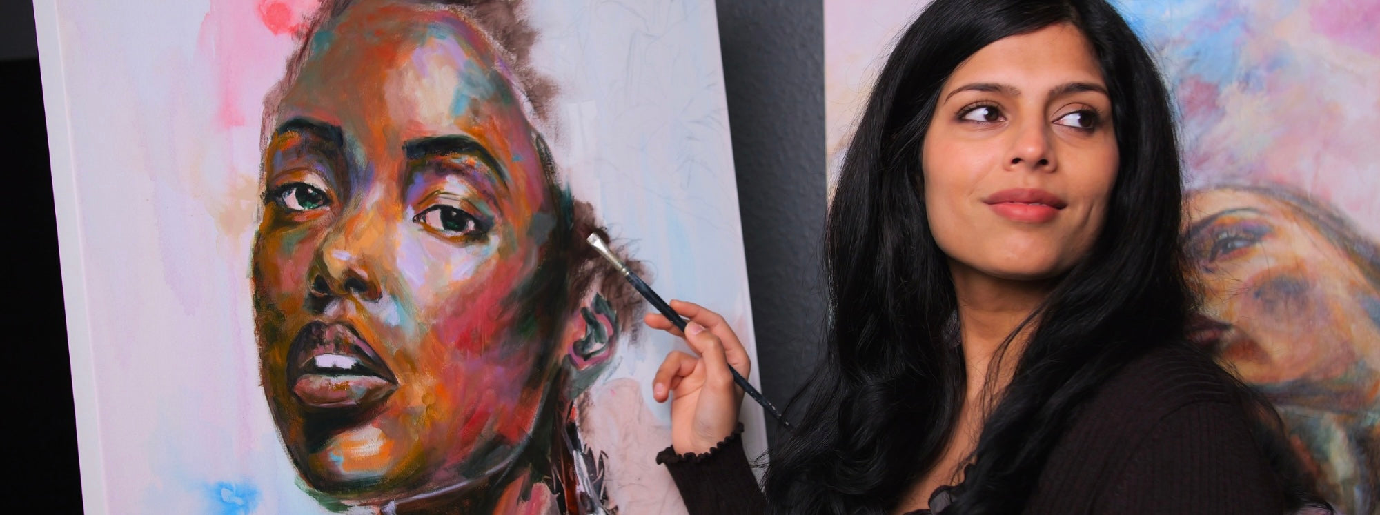 Sonias Reise in die Welt der Kunst begann bereits in ihrer Kindheit, als sie sich tief in das Zeichnen und Malen verliebte. Aufgewachsen in London, Großbritannien, zeichnete sie sich durch die Teilnahme an zahlreichen Kunstwettbewerben aus, die sie gewann, und stärkte so ihre Verbundenheit mit dem kreativen Ausdruck.