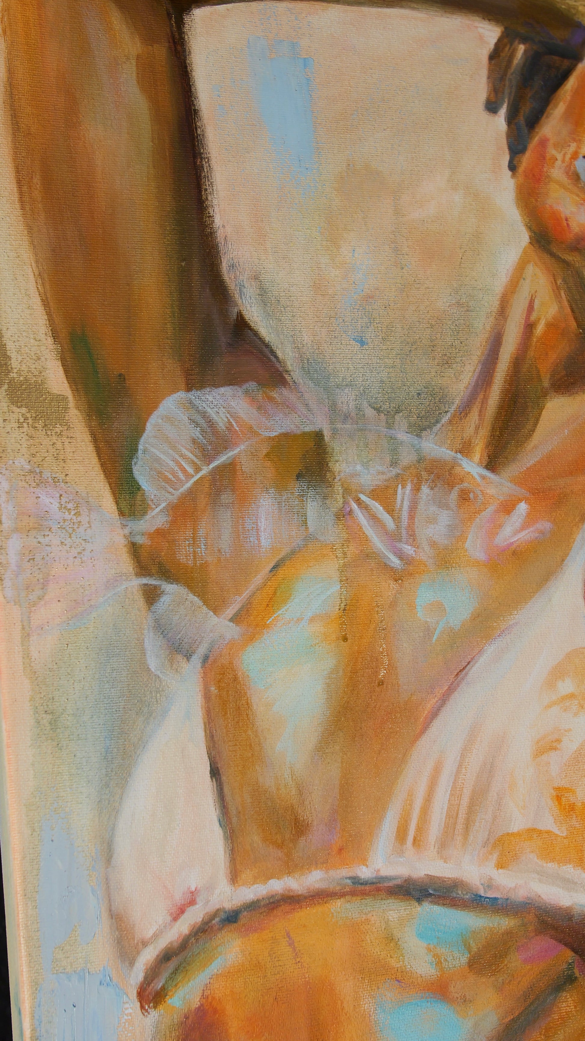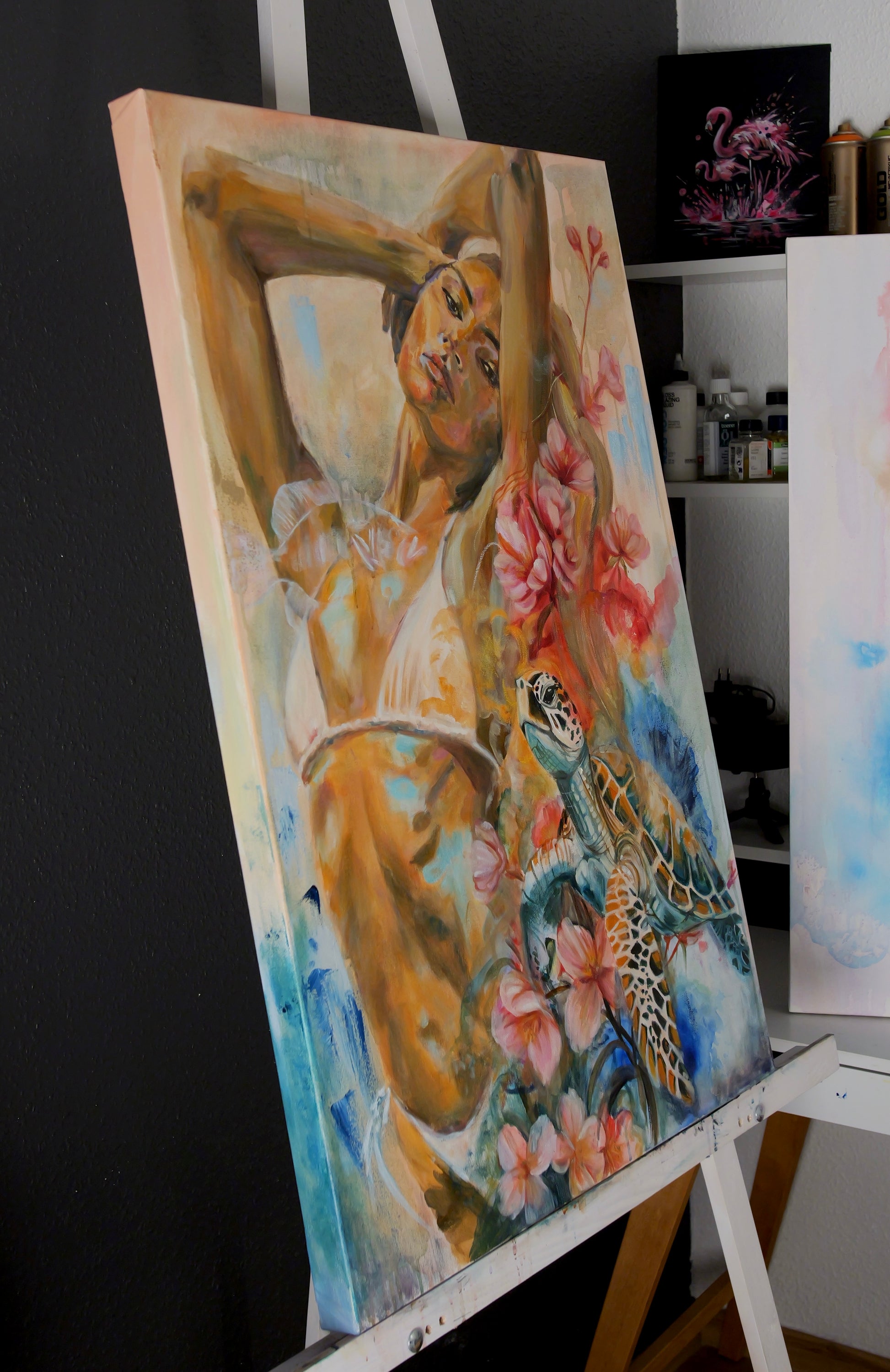 90 x 60 cm, Originales Mixed-Media-Ölgemälde auf galeriegespannter Leinwand. Fertig zum Aufhängen.